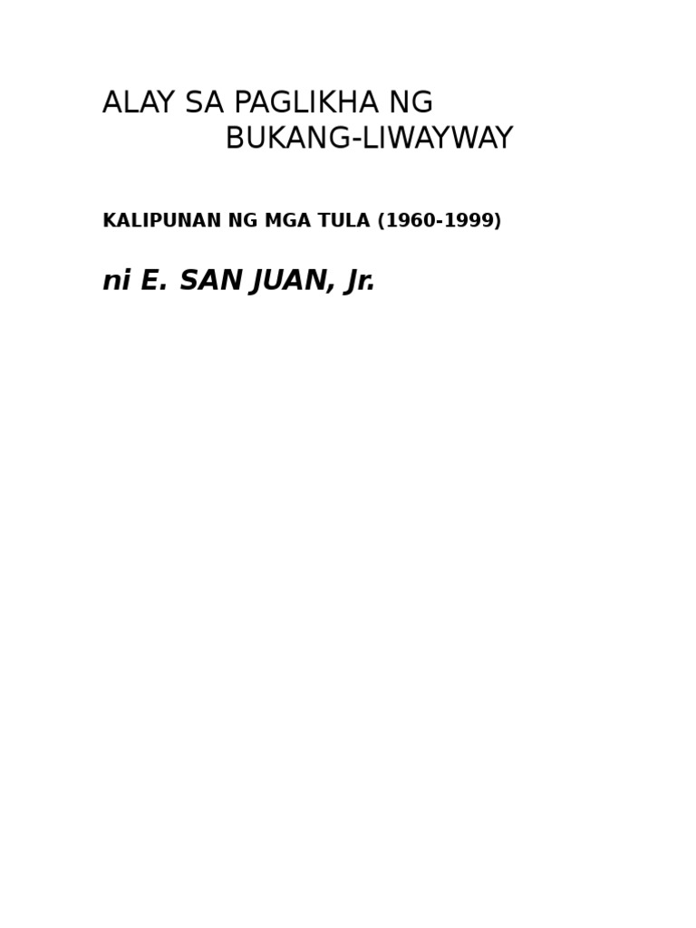 Alay Sa Paglikha Ng Bukang Liwayway Poem Doc