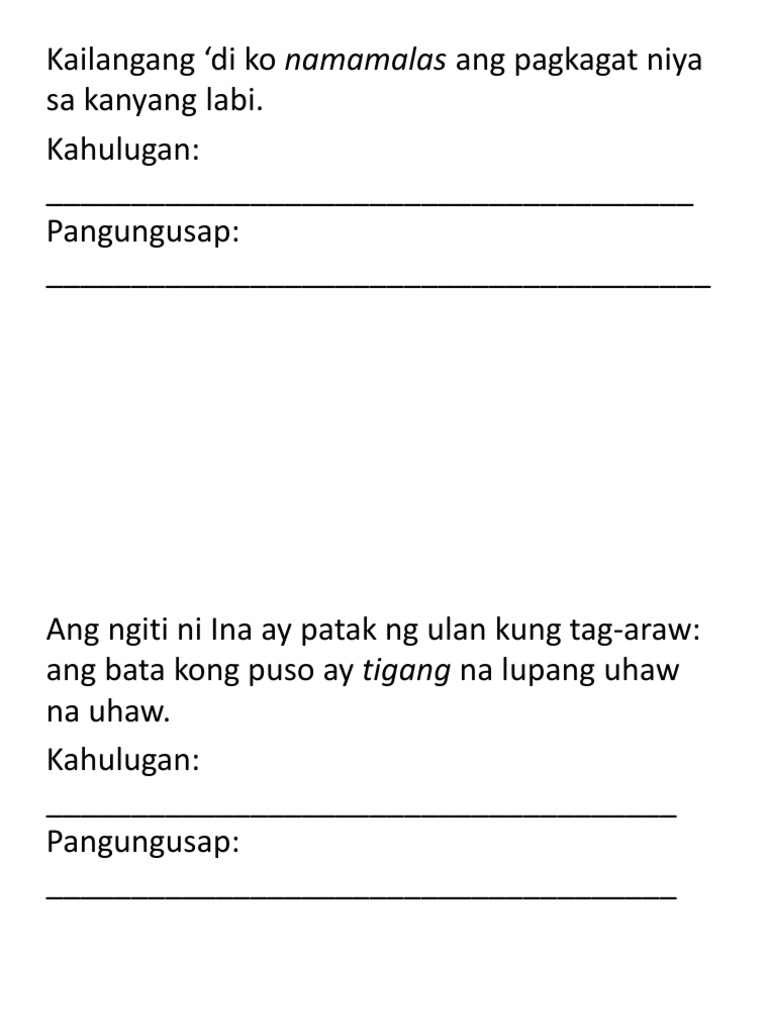 Jump to navigation Jump to search. Sagot Sa huling araw ng paglalang Sinabi ng Diyos Lalangin natin ang tao sa ating larawan ayon sa ating wangis. When to Worry When to Relax.