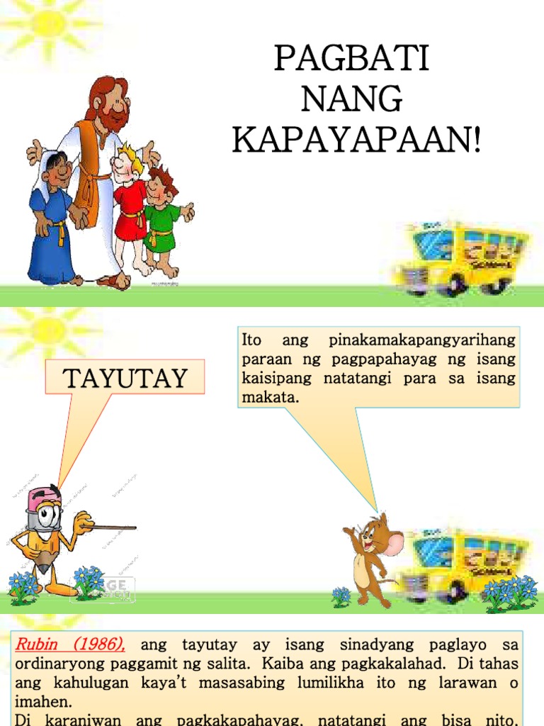 Ang karaniwang kahulugan ng salitang rhema ay isang salitang binibigkas ng bibig Halimbawa ay ang Lukas 138 kung saan sinabi ng isang anghel kay Maria na siya ang magiging ina ng anak ng Diyos. Human translations with examples. May tatlong gamit ang mga salitang ito sa panitikang gaya ng tula nobela at sanaysay.
